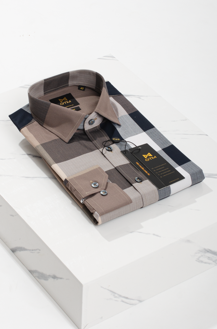 Sơ Mi Ngắn Tay Xanh Kẻ Nâu GTM Luxury