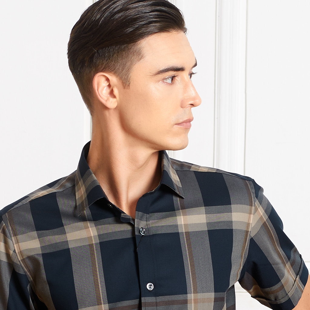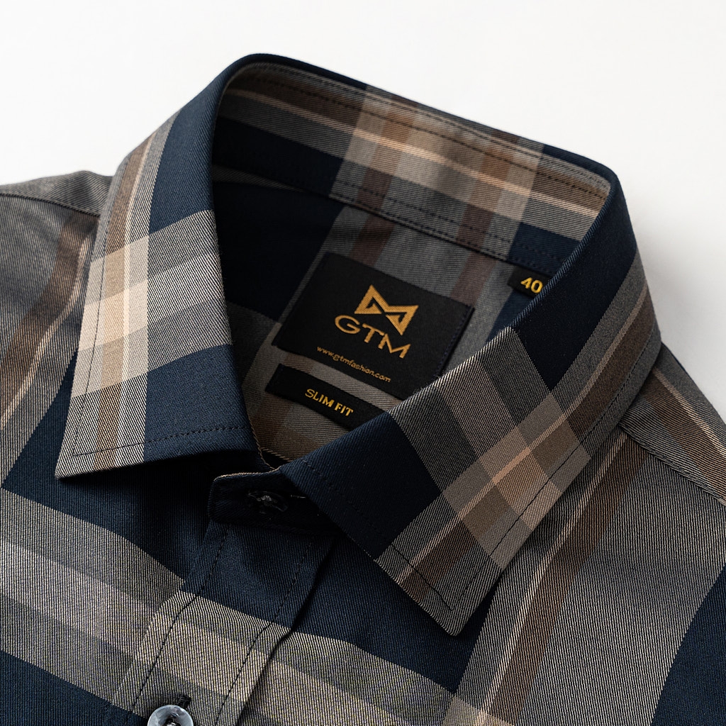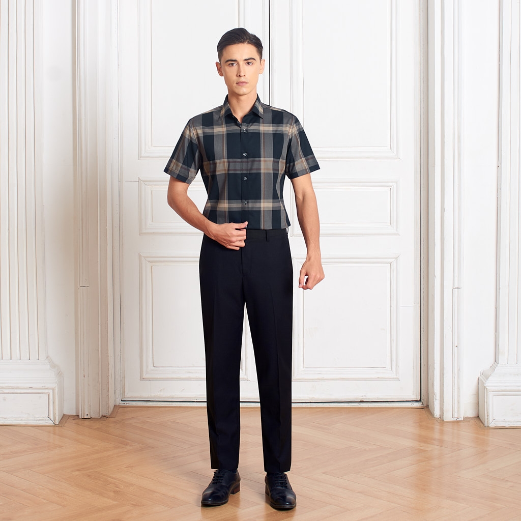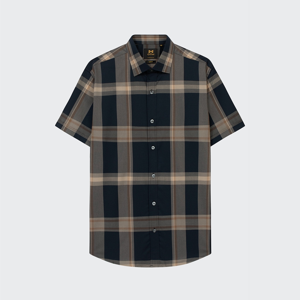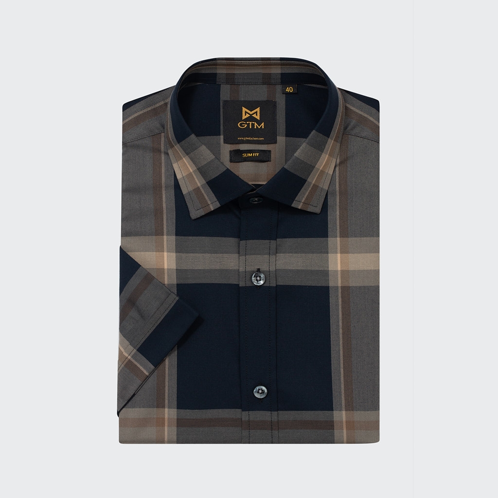 Sơ Mi Ngắn Tay Xanh Kẻ Nâu GTM Luxury