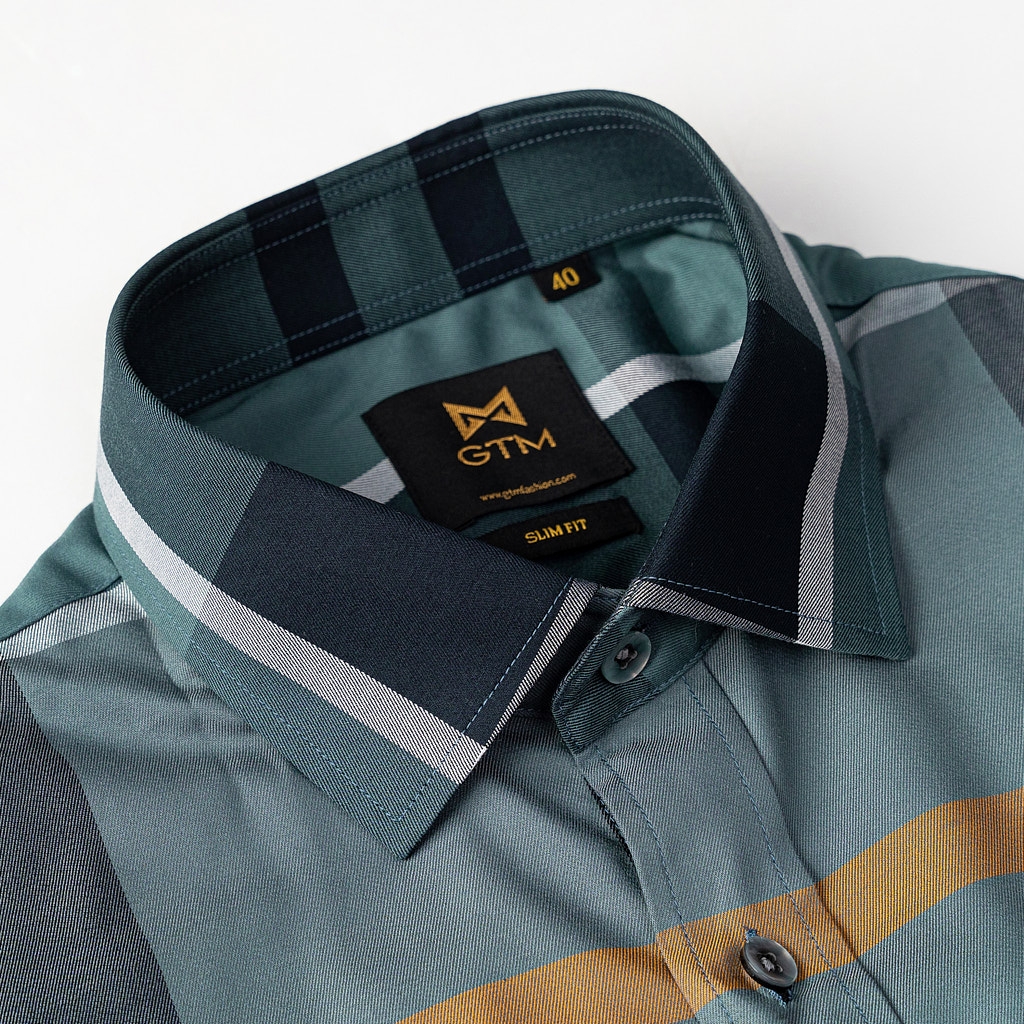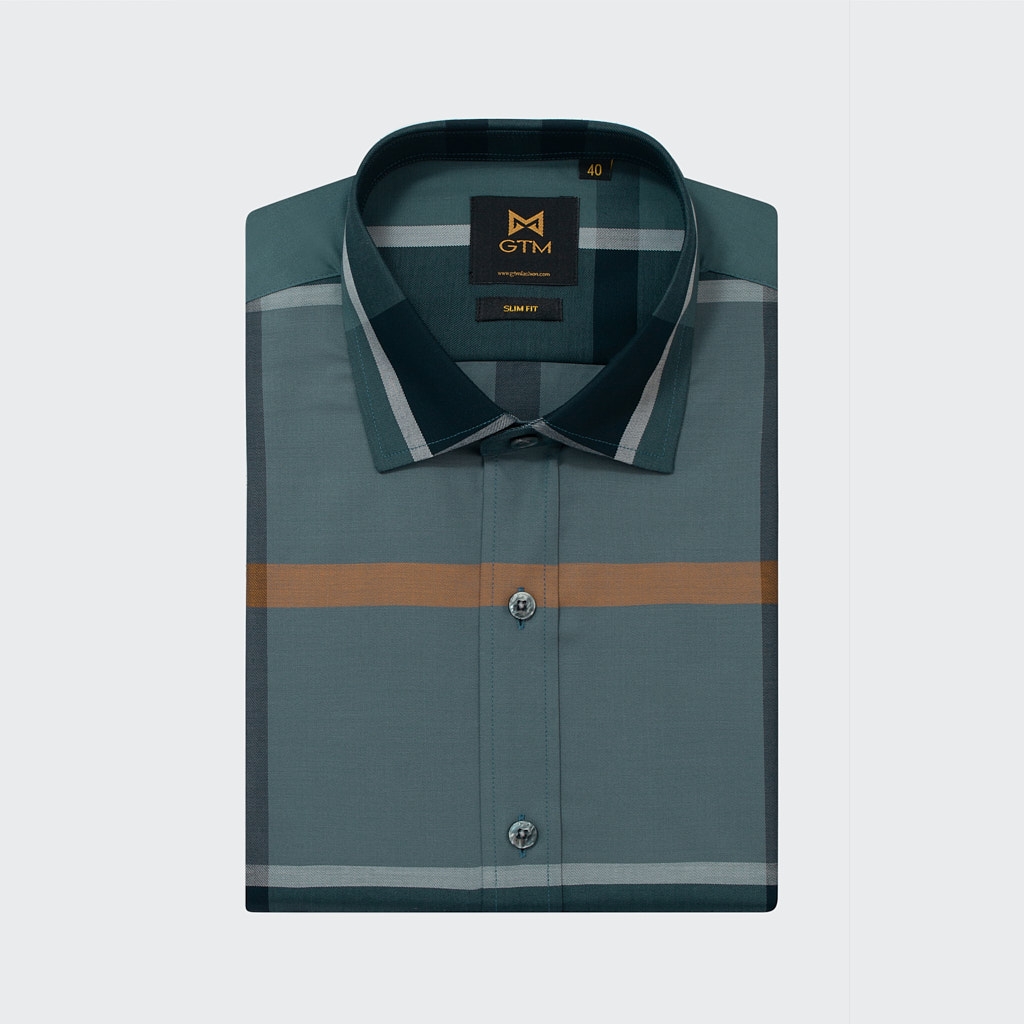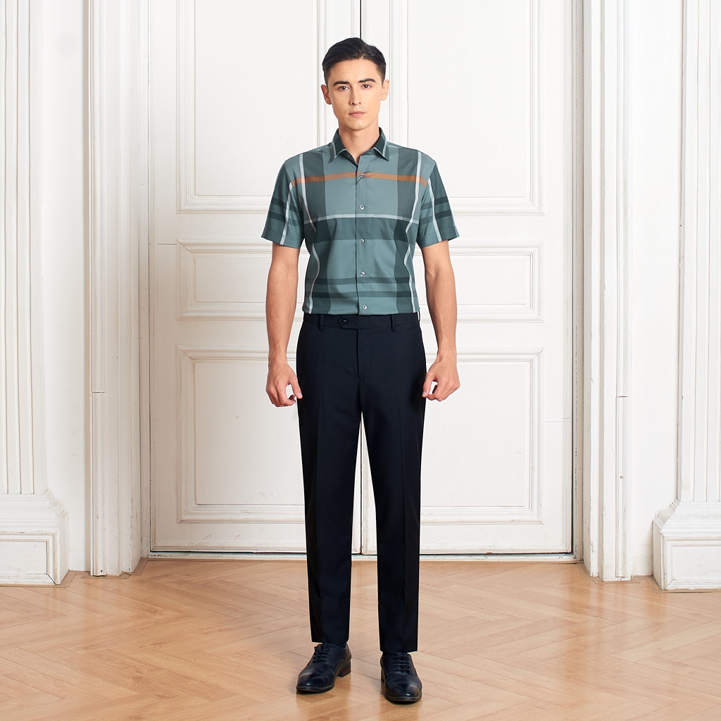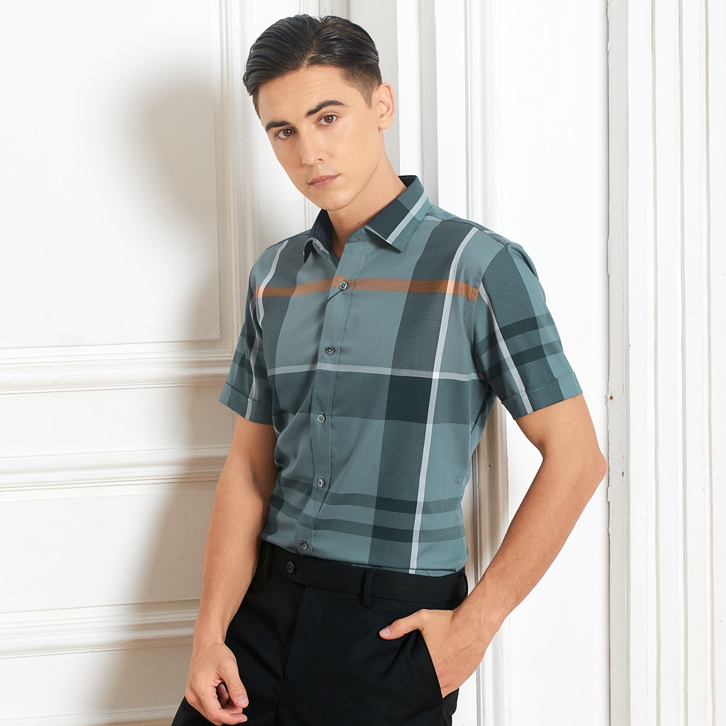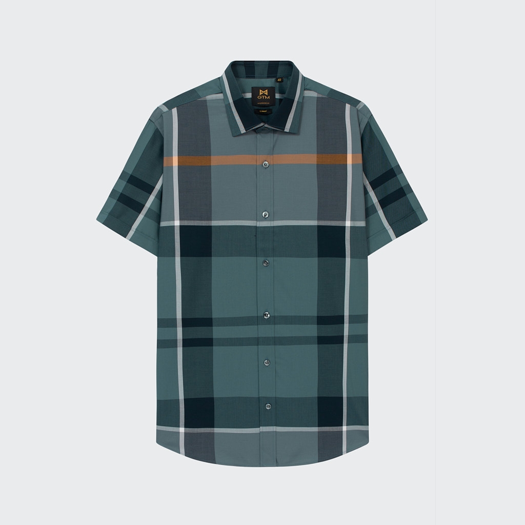 Sơ Mi Ngắn Tay Xanh Kẻ Signature GTM Luxury